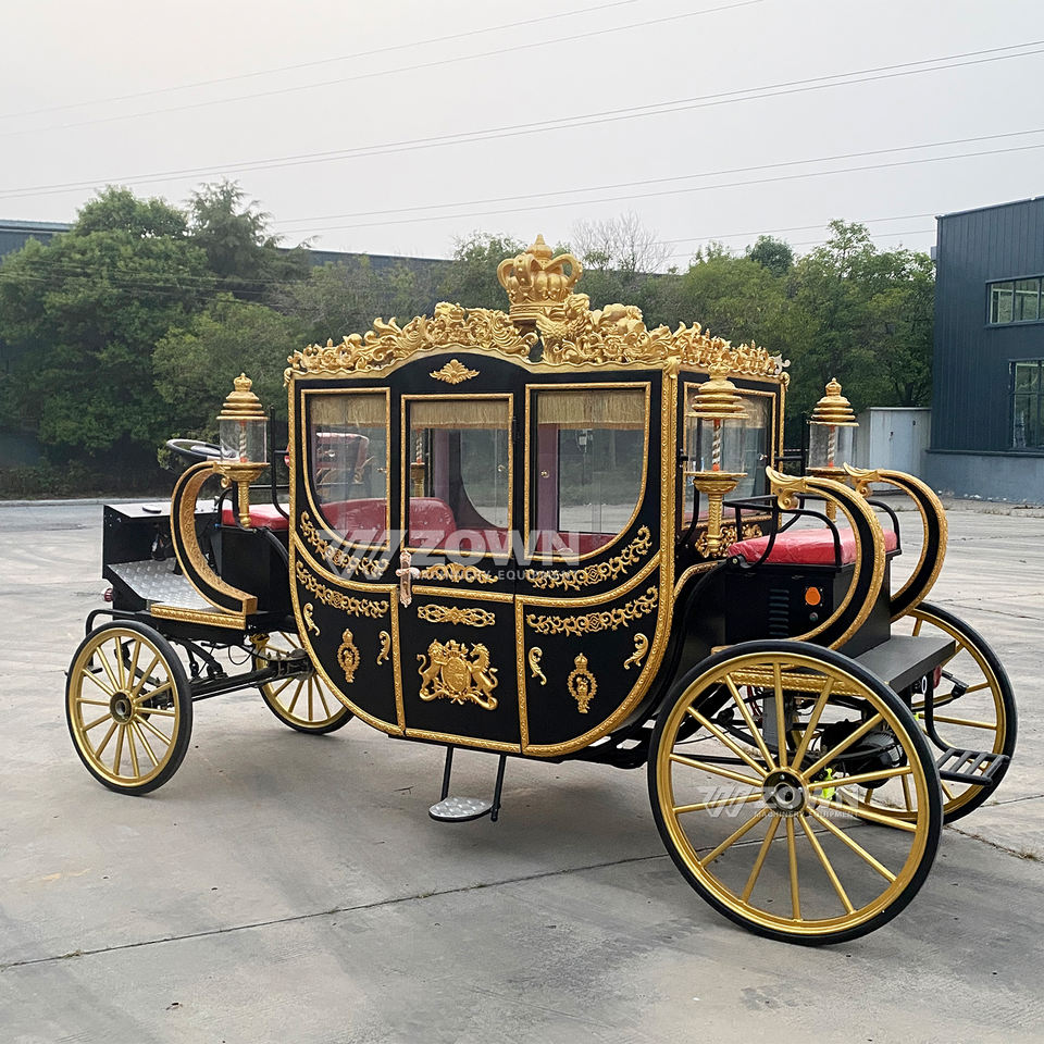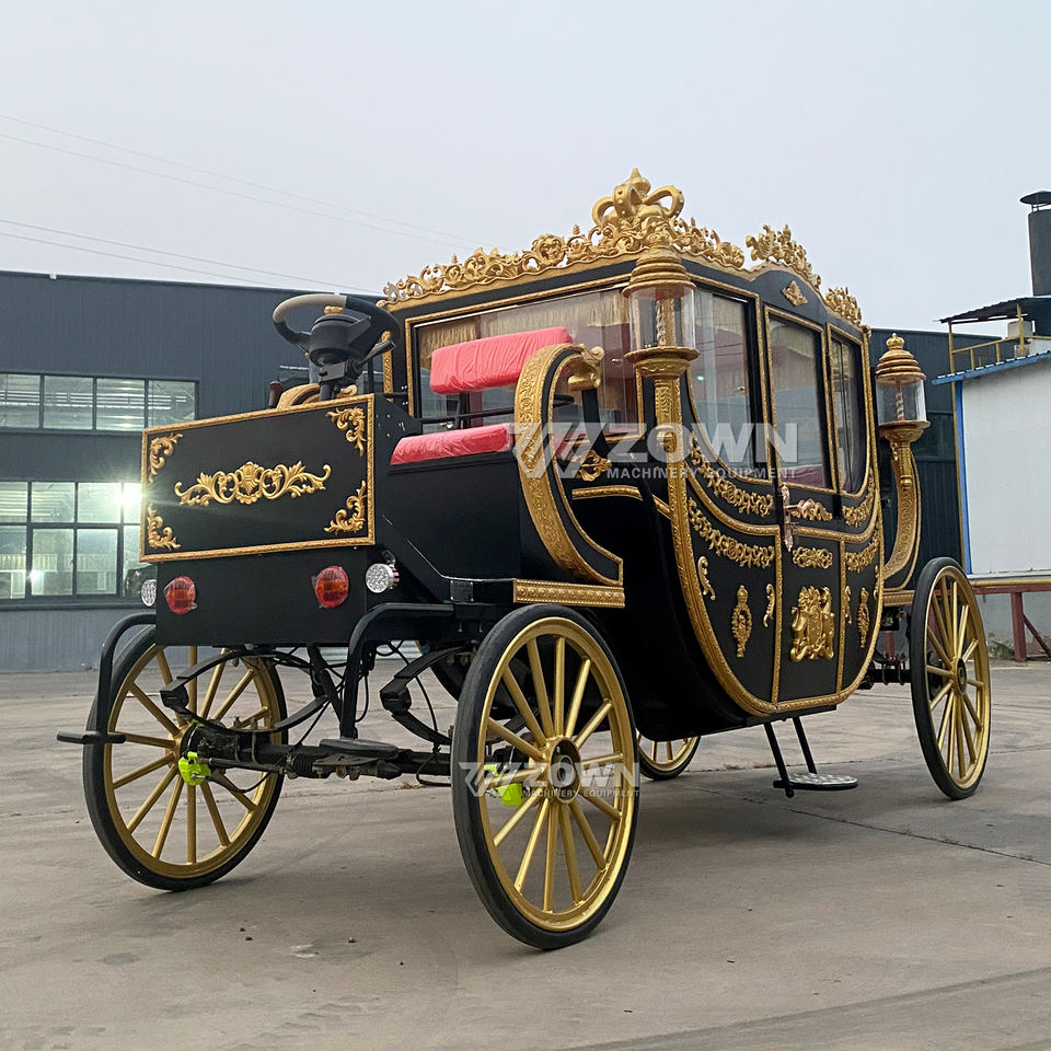 รถม้าสำหรับงานแต่งงานสีดำรถลากม้าไฟฟ้าสไตล์โบราณรถเที่ยวชมสถานที่