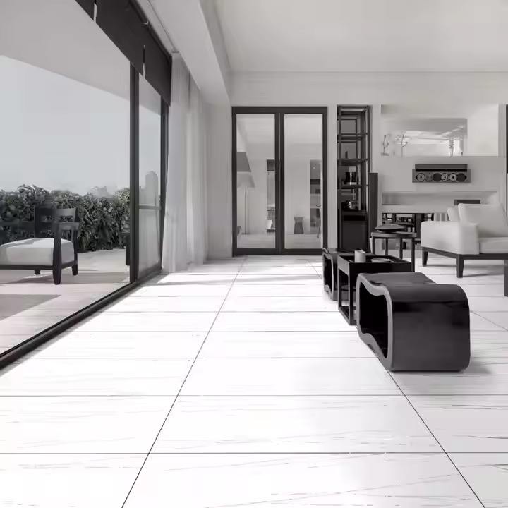 กระเบื้องปูพื้นหินอ่อนขัดเงาขนาด600x1200มม. ห้องนั่งเล่นห้องโถงล็อบบี้โรงแรมกระเบื้องพอร์ซเลนสีขาว