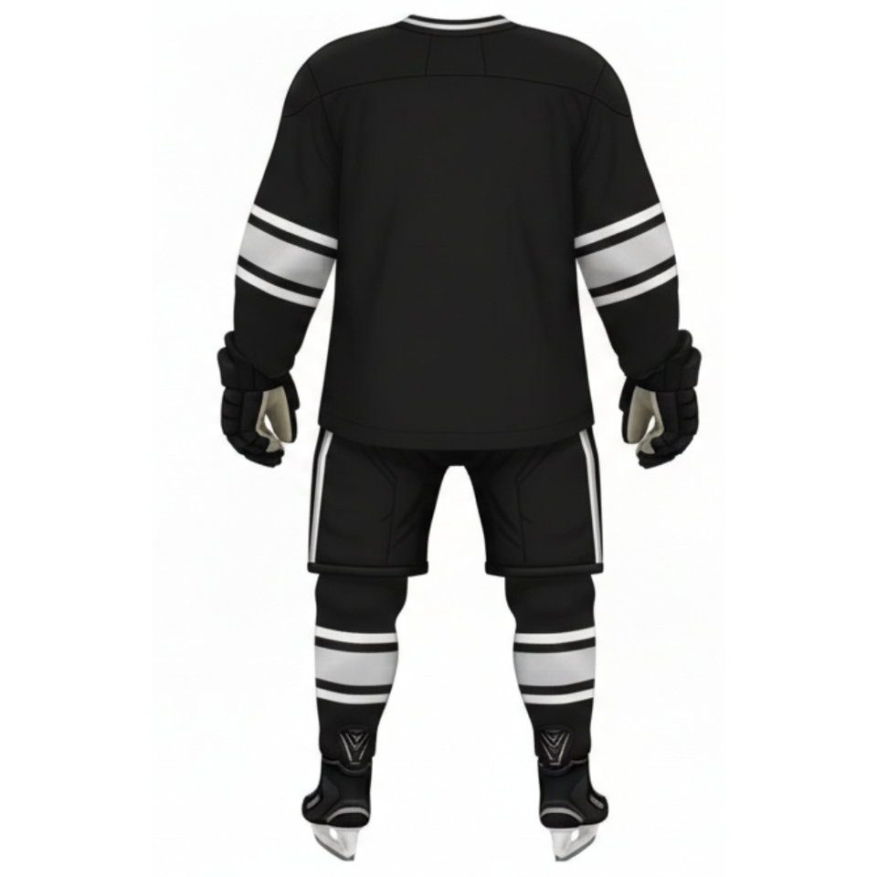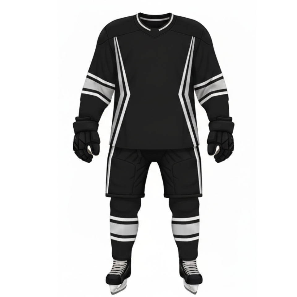 ชุดฮอกกี้น้ำแข็งสีดำและสีเงินขายดี - ออกแบบโลโก้ชุดกีฬาของคุณเอง เสื้อเจอร์ซีย์ทรงวีแบบมืออาชีพ