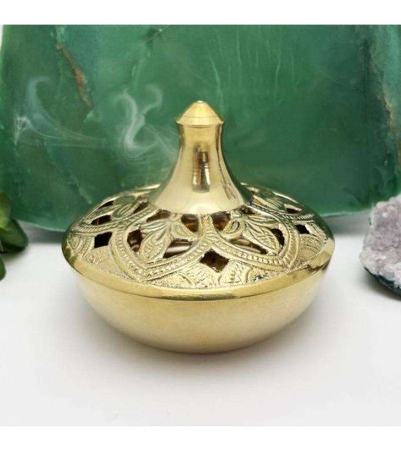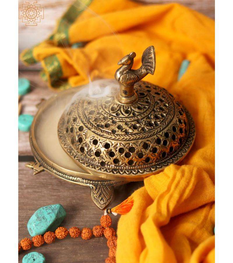ที่ใส่ธูปทองเหลืองที่มีดีไซน์ศิลปะที่ซับซ้อนสำหรับการทำสมาธิอย่างสงบสุขขัดเงาสีทอง