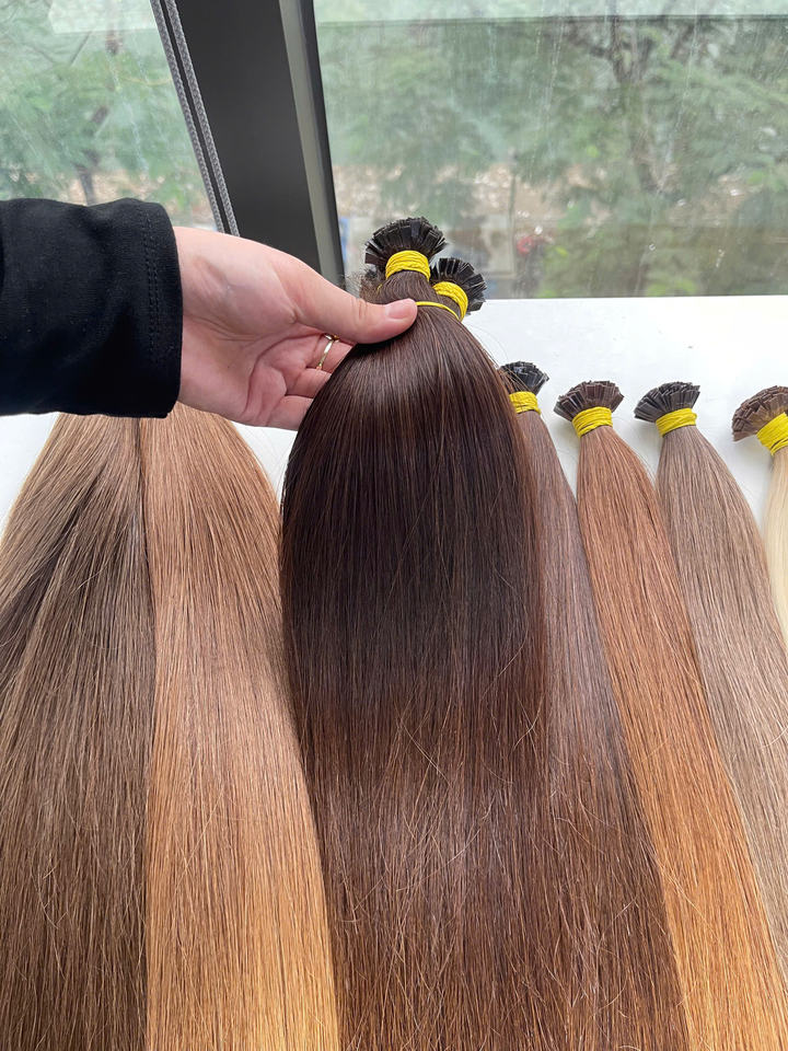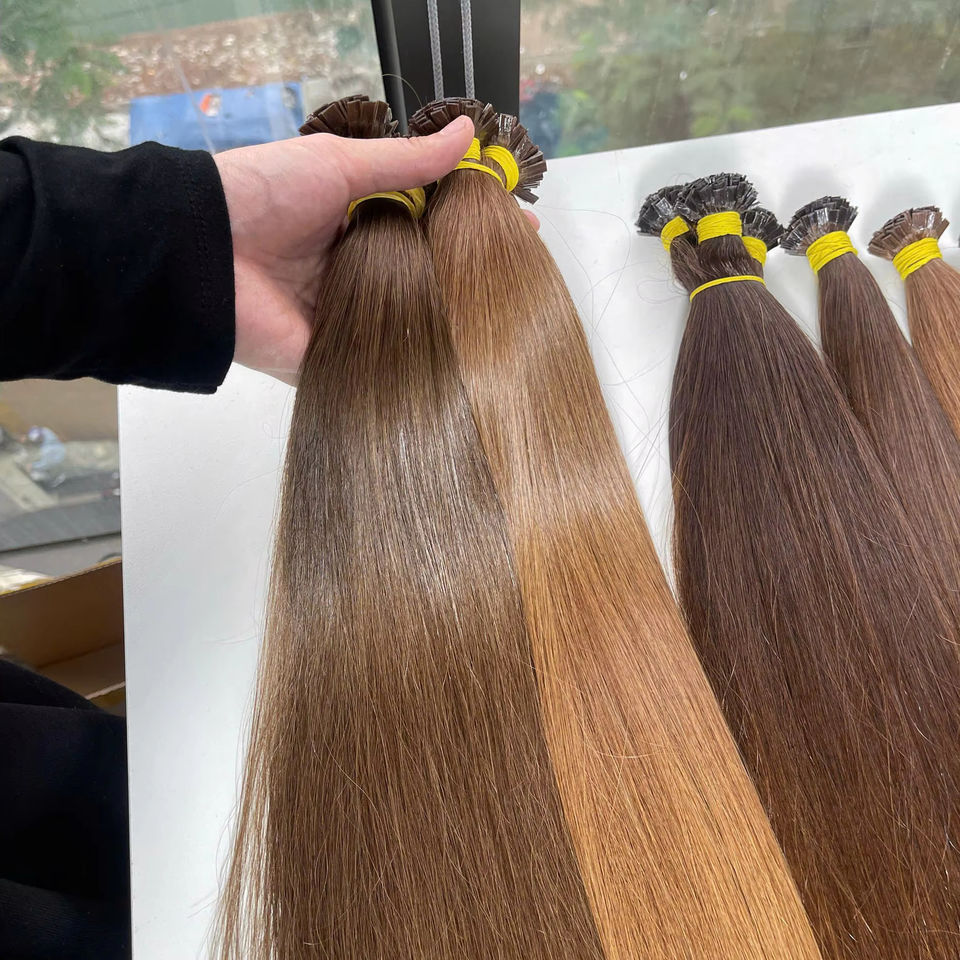 ต่อผมแบบปลายแบน สีน้ำตาล ขายดีที่สุด ผมเวอร์จิ้นเวียดนามแท้ 100% จัดส่งรวดเร็ว