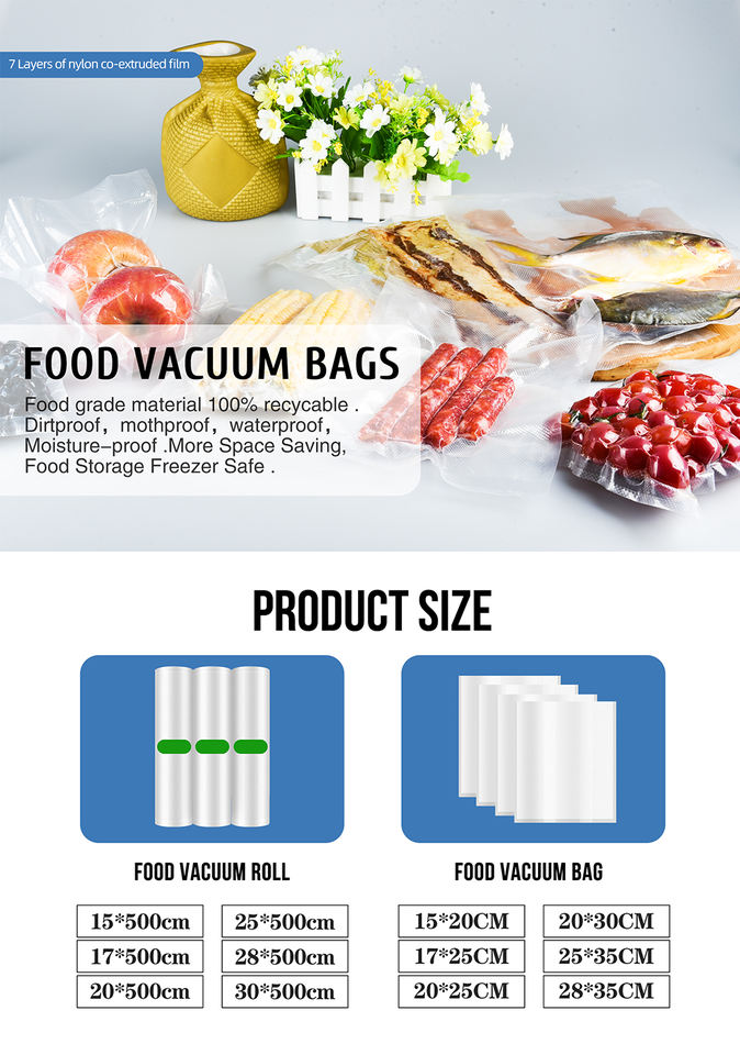 Best-selling Heat Seal PE+PA Vacuum Packing Bags Smooth Embossing Vacuum Vegetable Edge Bag Freezer Bag Packaging