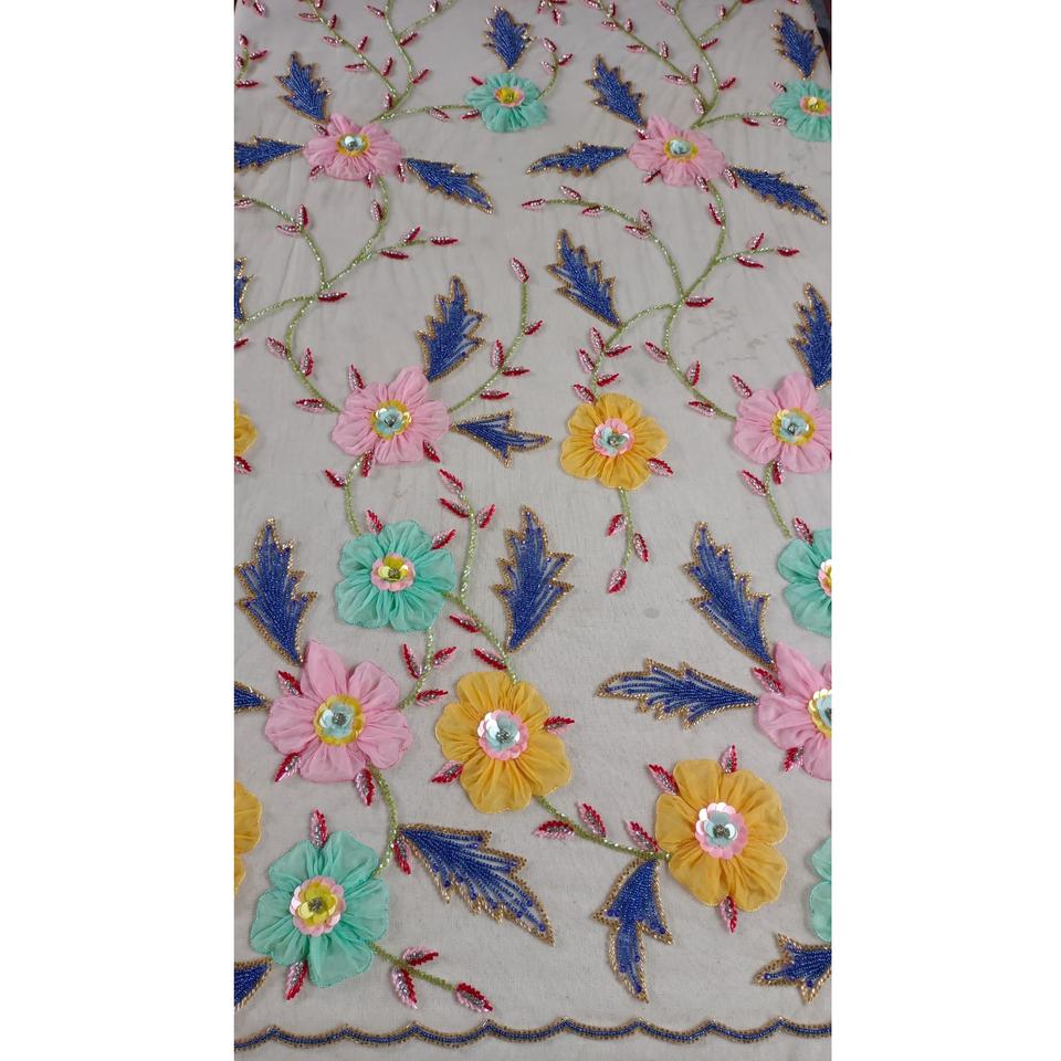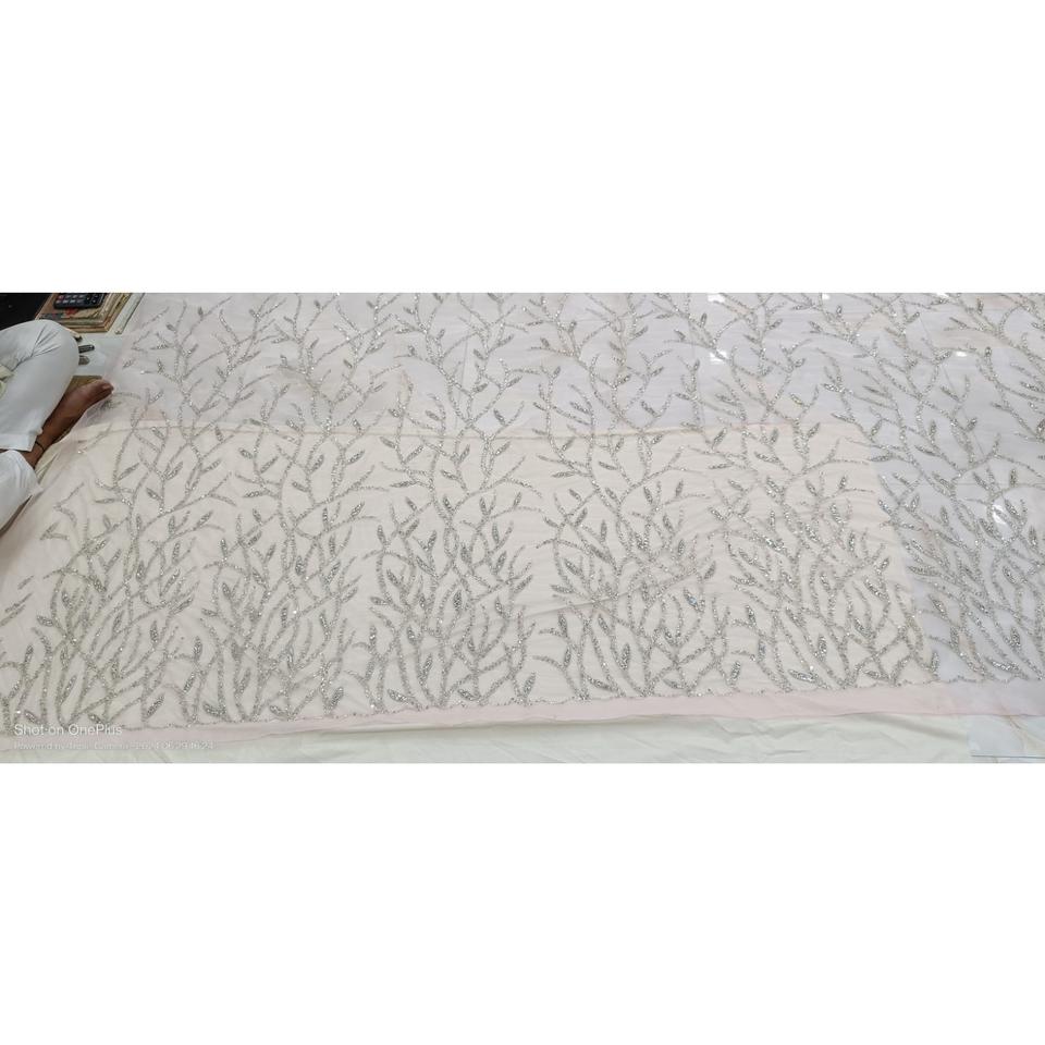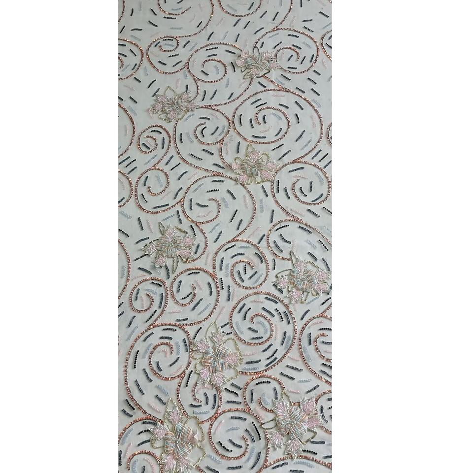 ผ้าลูกไม้ปักลูกปัดดีไซน์เนอร์หรูหราพร้อมเลื่อมระยิบระยับสำหรับการใช้งานแฟชั่นชั้นสูงเพื่อการส่งออก