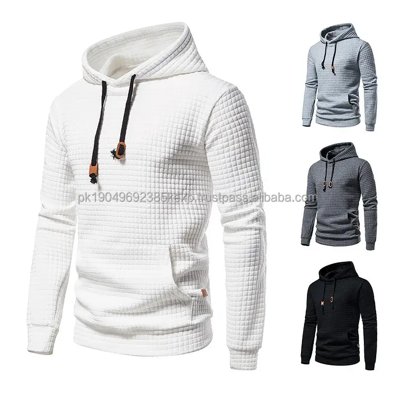 เสื้อฮู้ดผู้ชายแบบสวมหัว สไตล์ลำลอง ผ้าวาฟเฟิล สีพื้น ถักทออย่างดี สำหรับฤดูใบไม้ผลิ ขายดีที่สุด