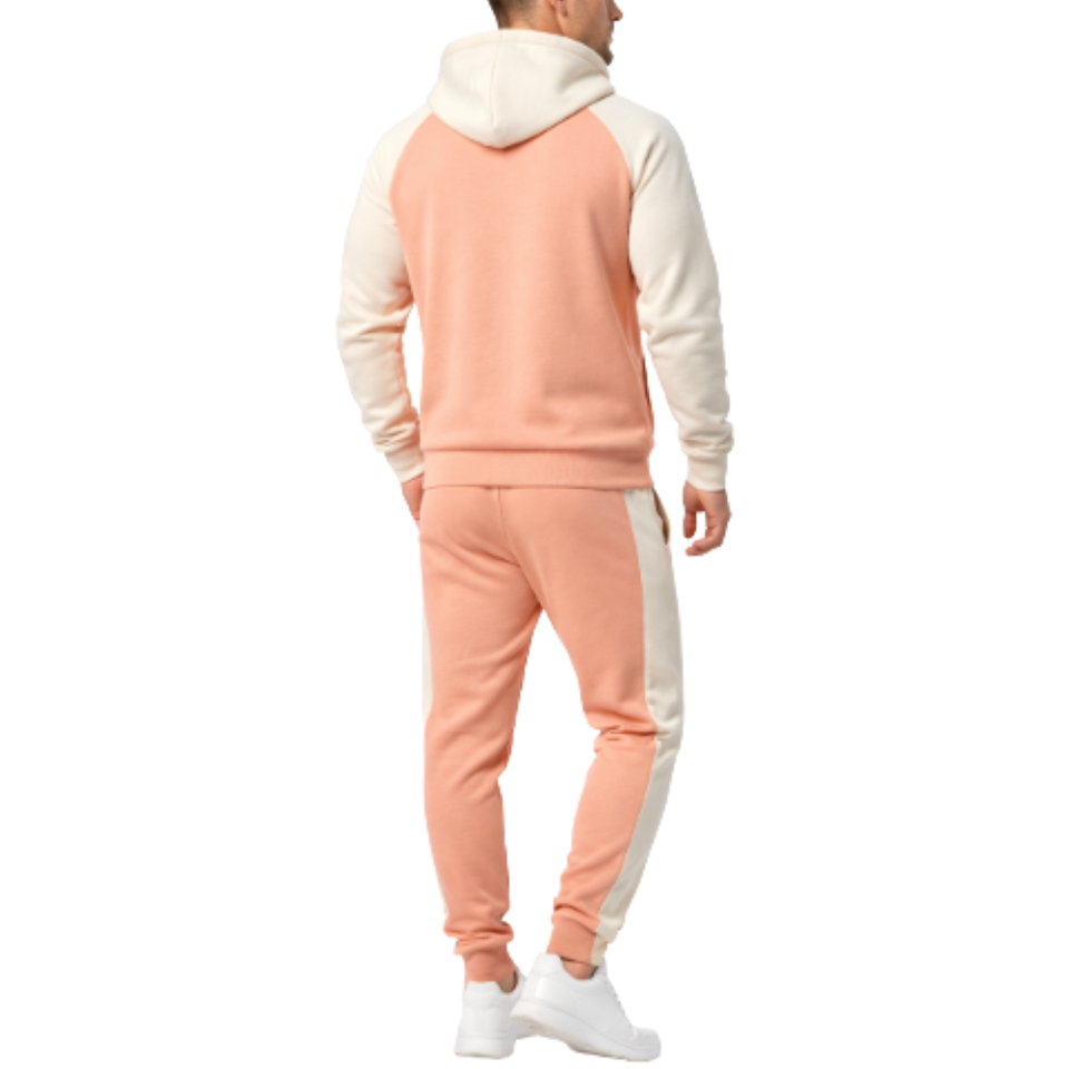 ชุดวอร์มพีชแอนด์ครีมขายดีสำหรับผู้ชาย | เสื้อฮู้ดแบบสวมหัวพร้อมกางเกงขายาวลายแถบข้างสีครีม | ชุดจ็อกเกอร์สุดเทรนดี้
