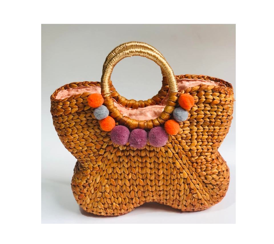 กระเป๋าถือผักตบชวาธรรมชาติพร้อมที่จับสำหรับผู้หญิงเหมาะสำหรับใช้ในชายหาดหรือวันหยุด