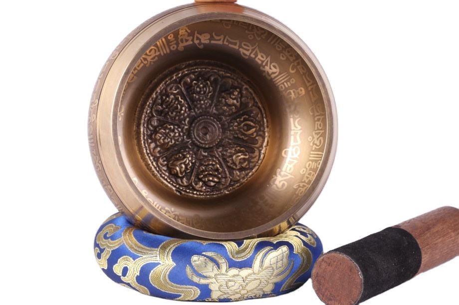 ชามร้องเพลงทิเบตที่ขายดีที่สุดสำหรับโยคะการนั่งสมาธิและการบำบัดด้วยเสียงโดยมีศิลปะลูกเต๋าที่ไม่เหมือนใครเพื่อการบำบัด