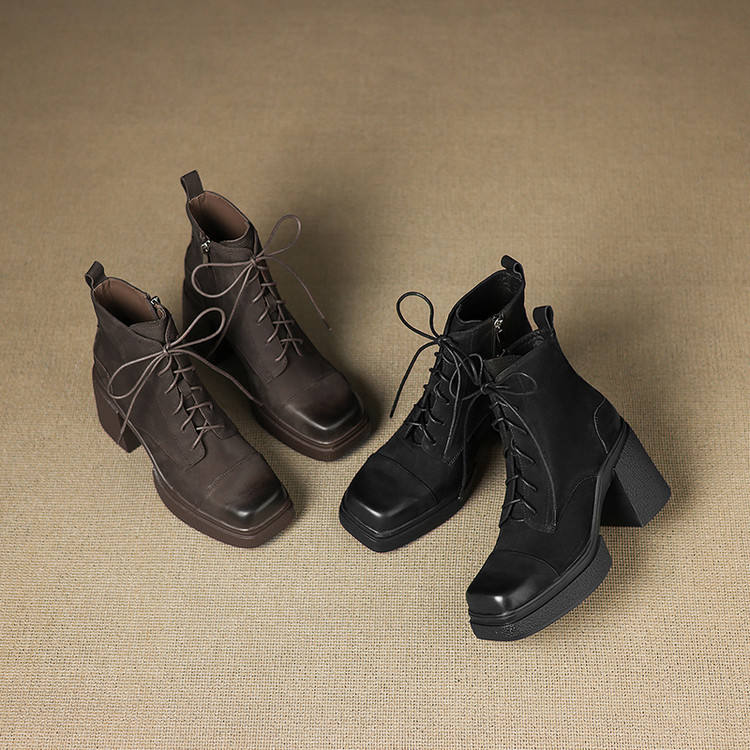 รองเท้าบูทหุ้มข้อกลางน่องหนังวัวแท้คุณภาพดี สีพื้น สไตล์เรโทร ตกแต่งด้วยเข็มขัด กันน้ำ กันลื่น ส้นหนา 1 นิ้ว แบบลำลอง ขายดีที่สุด