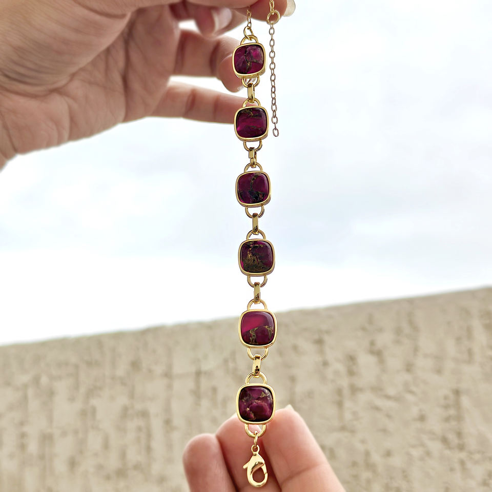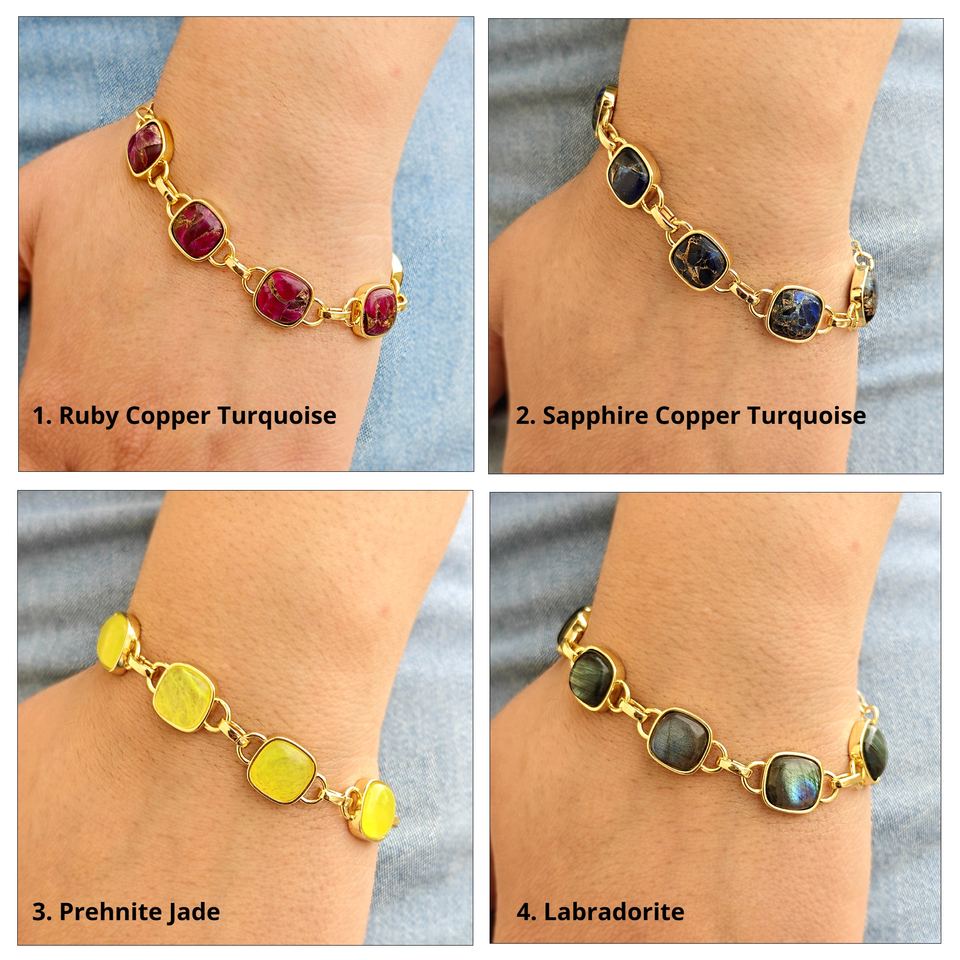 สร้อยข้อมือทองเหลืองชุบทอง 18k ประดับทับทิมโมฮาวี คัพเปอร์ เทอร์ควอยซ์ รูปทรงคุชชั่น ดีไซน์เก๋ ขายดีที่สุด เหมาะสำหรับผู้หญิง ใส่ไปงานปาร์ตี้