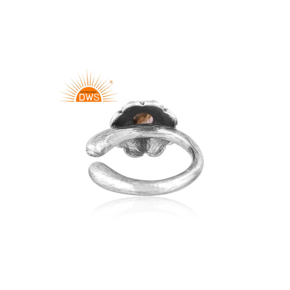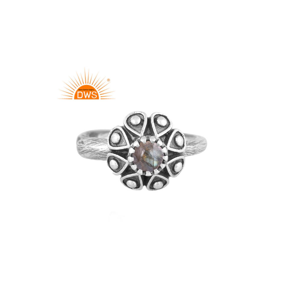 แหวนเรียงซ้อนอัญมณีลาบราดอไรต์ธรรมชาติทำจากเงินสเตอร์ลิงออกซิไดซ์