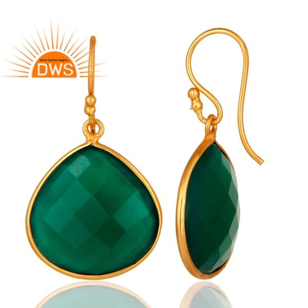 ที่ขายดีที่สุดเงินสเตอร์ลิง18พันชุบทองธรรมชาติสีเขียวพลอยนิลต่างหูห้อย Demi ผู้ผลิตเครื่องประดับปรับ