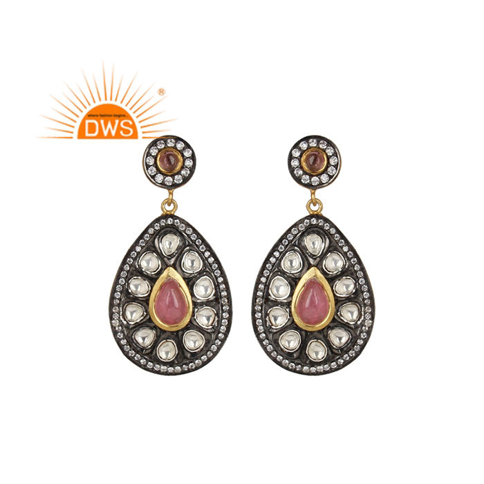 ขายดีที่สุดเงินสเตอร์ลิง CZ ธรรมชาติ,คริสตัลควอตซ์และพลอยทัวร์มาลีนสีชมพูห้อยต่างหูผู้ผลิตเครื่องประดับที่กำหนดเอง
