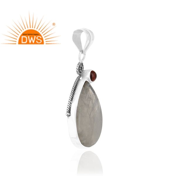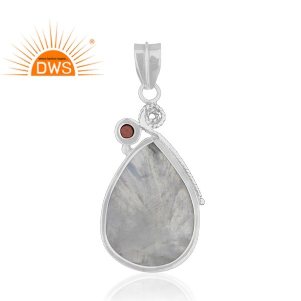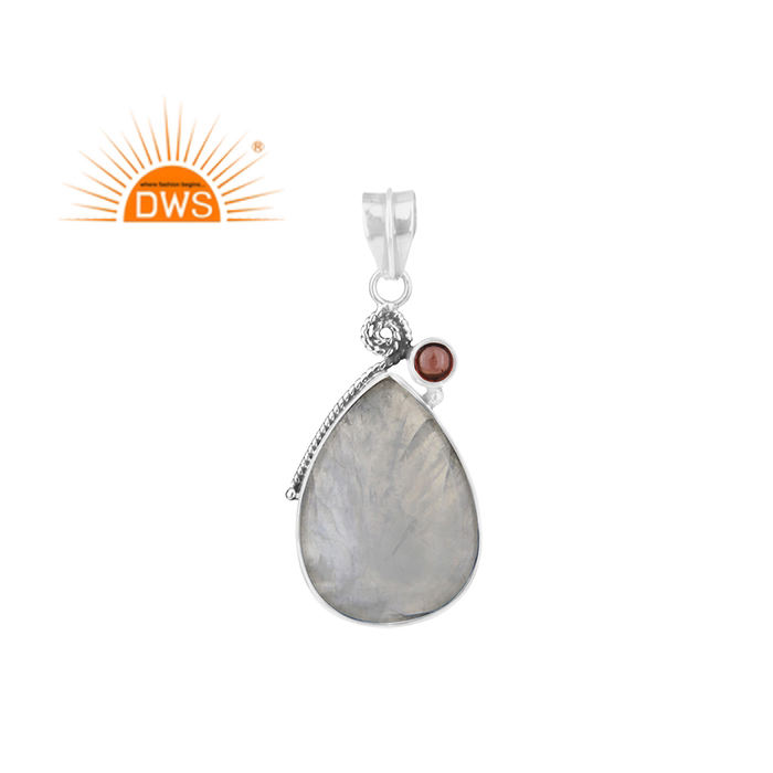 Best selling sterling silver natural Rainbow Moon Stone & Garnet gemstone pendant custom jewelry manufacturer