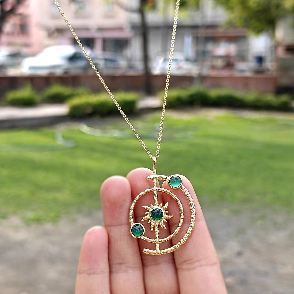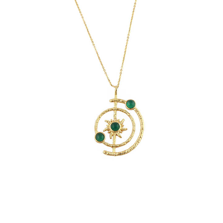สร้อยคอจี้พลอยออนิกซ์สีเขียวทรงกลมขนาดเล็กขายดีที่สุด ทำจากทองเหลืองชุบทอง เหมาะสำหรับสวมใส่ทุกวัน