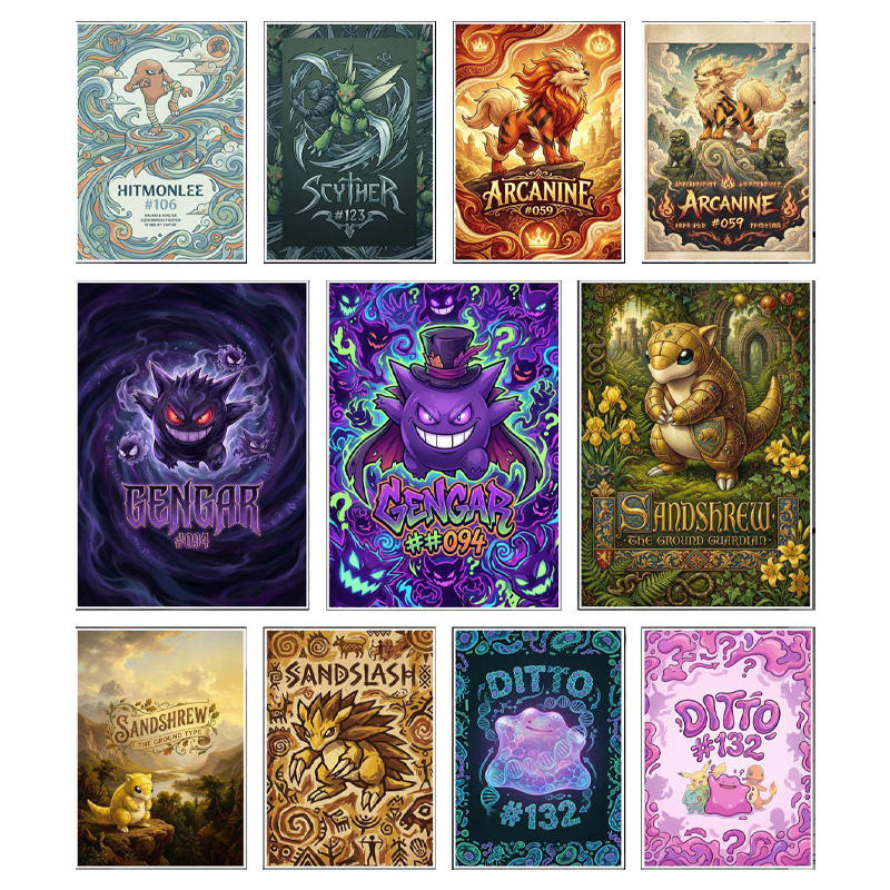 การ์ดสะสมโปเกมอนลายศิลปะการ์ตูนขายดี ขนาด A5 พร้อมอุปกรณ์เสริม ตัวละครหายาก ลายเปลวไฟแฟนตาซี ชุดการ์ดสะสมแบบกล่องสุ่ม