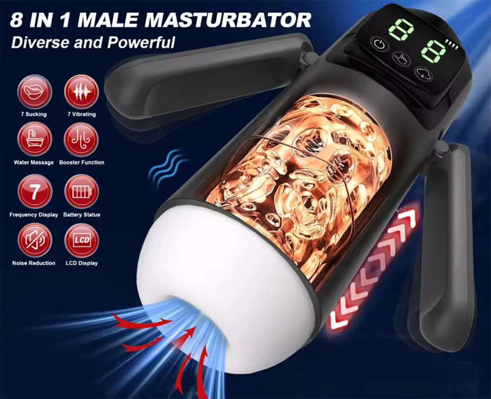 เครื่องช่วยสำเร็จความใคร่ชายแบบหมุนได้ กันน้ำ 100% รุ่นขายดีที่สุด แบบยืดหดได้ อัตโนมัติ 8in1 พร้อมระบบดูด ให้ความรู้สึกเหมือนจริง