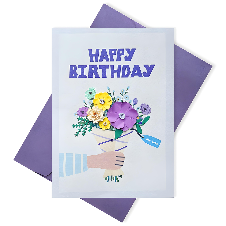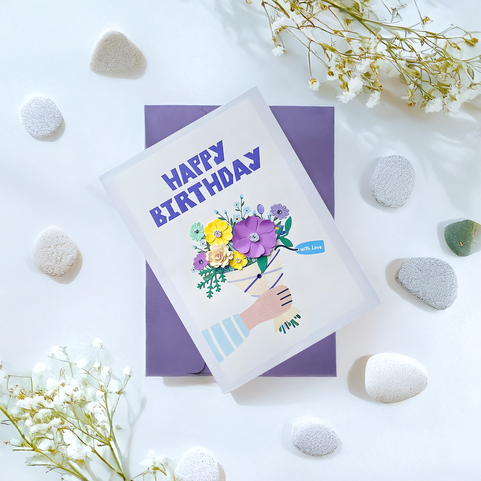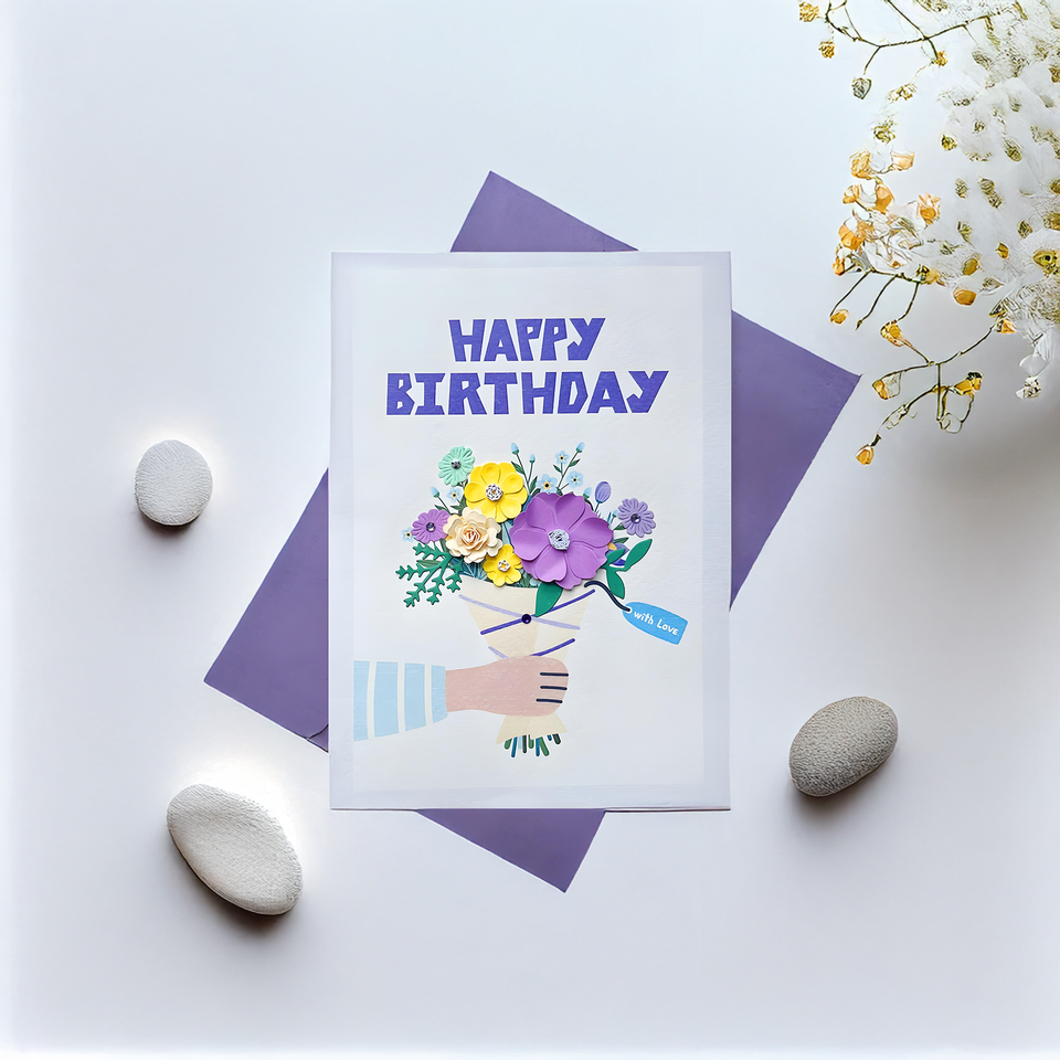 การ์ดอวยพรกระดาษเวียดนามเป็นมิตรกับสิ่งแวดล้อมการ์ดอวยพรวันเกิดลายนูน3D ทองหรูหราเป็นมิตรกับสิ่งแวดล้อม