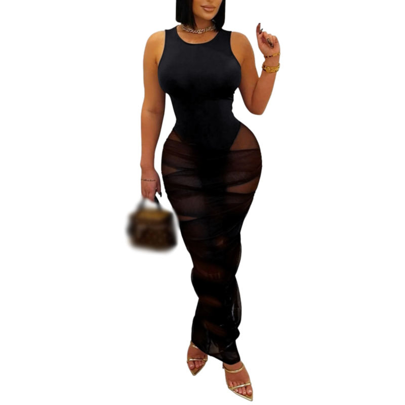เดรสยาวพิมพ์ลายดิจิทัลสุดเซ็กซี่ขายดี แต่งผ้าตาข่ายซีทรู ทรงเข้ารูป เหมาะสำหรับออกงานกลางคืน แฟชั่นสำหรับผู้หญิง