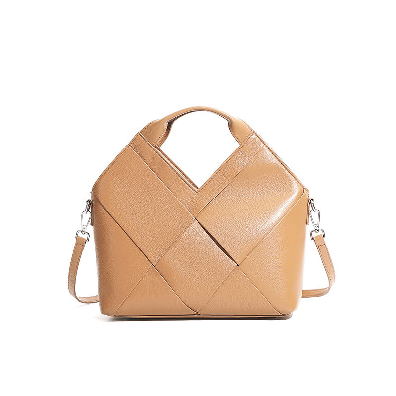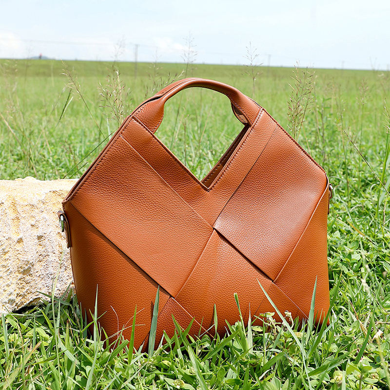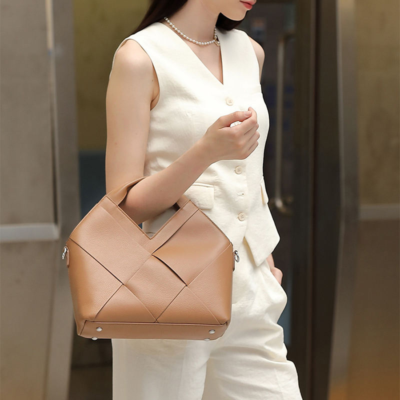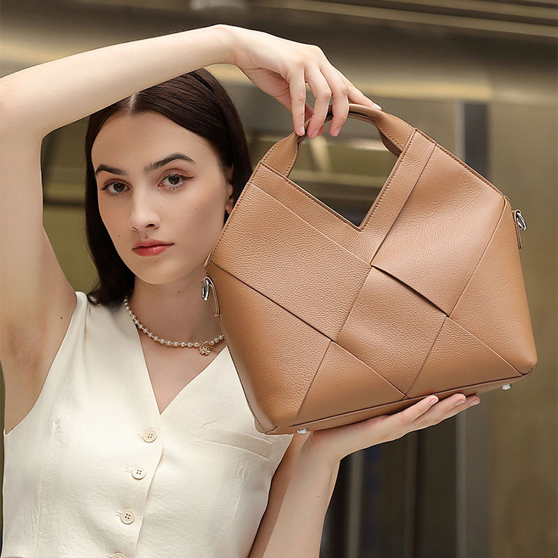 กระเป๋าโท้ทหนังแท้ถักลายยอดนิยม ดีไซน์สามเหลี่ยมกลับหัว แฟชั่น กระเป๋านุ่ม สะพายข้างหรือถือได้ สำหรับผู้หญิง