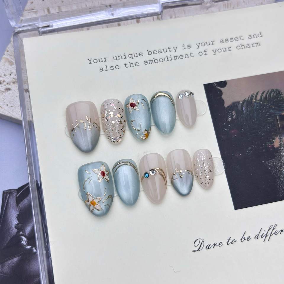 3D Gemstone Style Cat Eye Handmade Nails