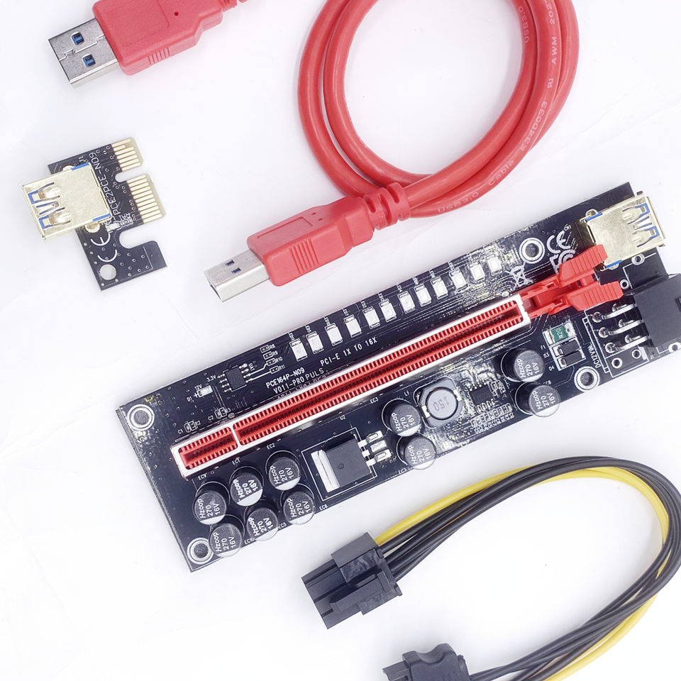 Better 10 Capacitance PCI-E V011-PRO Riser ส่วนประกอบอิเล็กทรอนิกส์ปรับปรุงคุณสมบัติที่เหนือกว่า Ver 009S 009C 011 Pro PLUS
