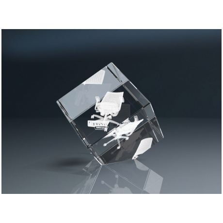 แก้วคริสตัลสีลูกบาศก์40x40x40มม. พร้อมเลเซอร์มุมเอียงแกะสลักลายนางฟ้า