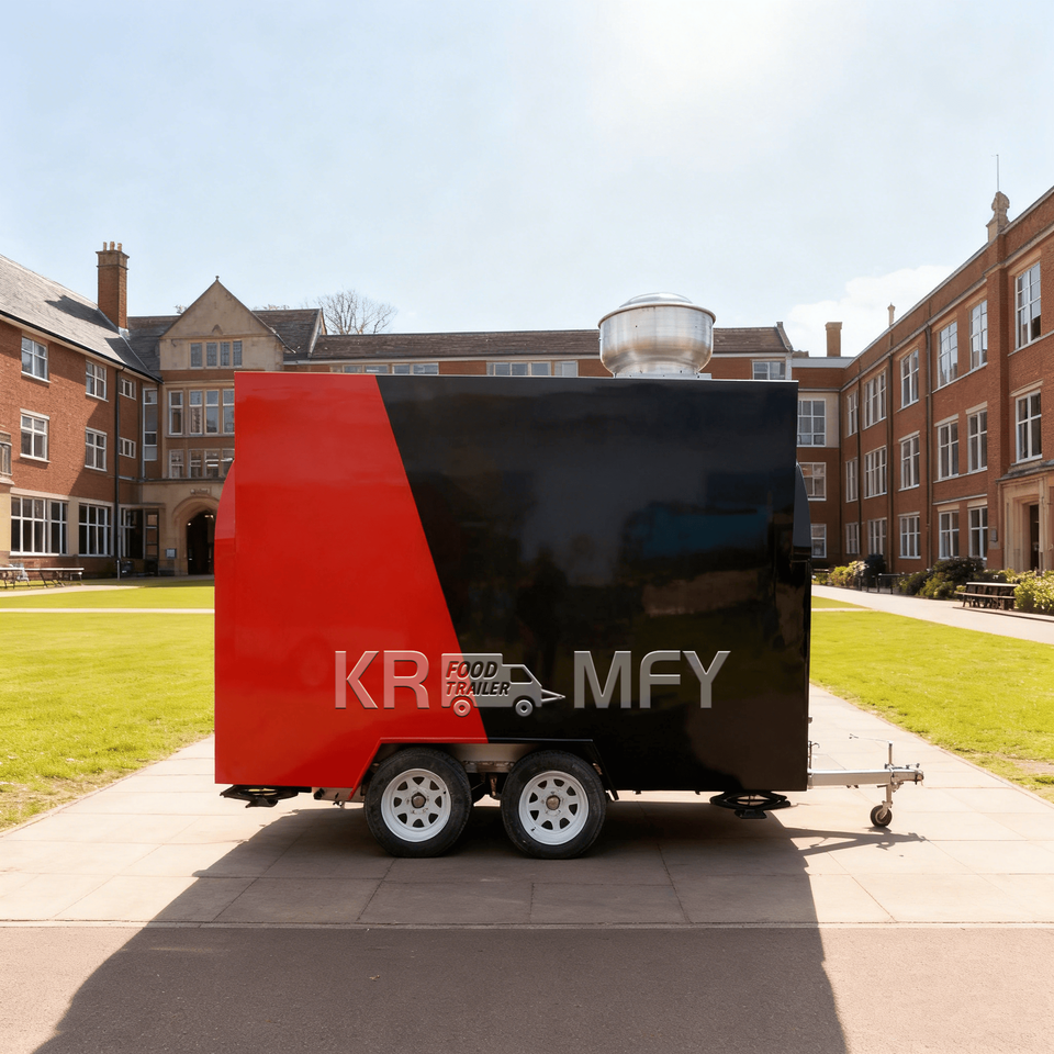 รถขายเครื่องดื่มแบบสองเพลา ตัวถังโลหะสำหรับขายขนม ออกแบบเองได้ รถขายพิซซ่าเคลื่อนที่