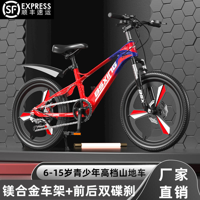 จักรยานเสือภูเขาสำหรับเด็กเบซซิงขนาด 24 นิ้ว โครงแมกนีเซียมอัลลอยด์ โช้คหน้าแบบปรับได้ เบาะนั่งปรับได้ จักรยานออฟโรดหลายเกียร์ สำหรับเด็กอายุ 8 ปีขึ้นไป