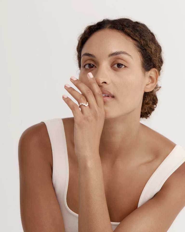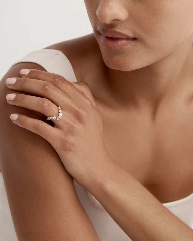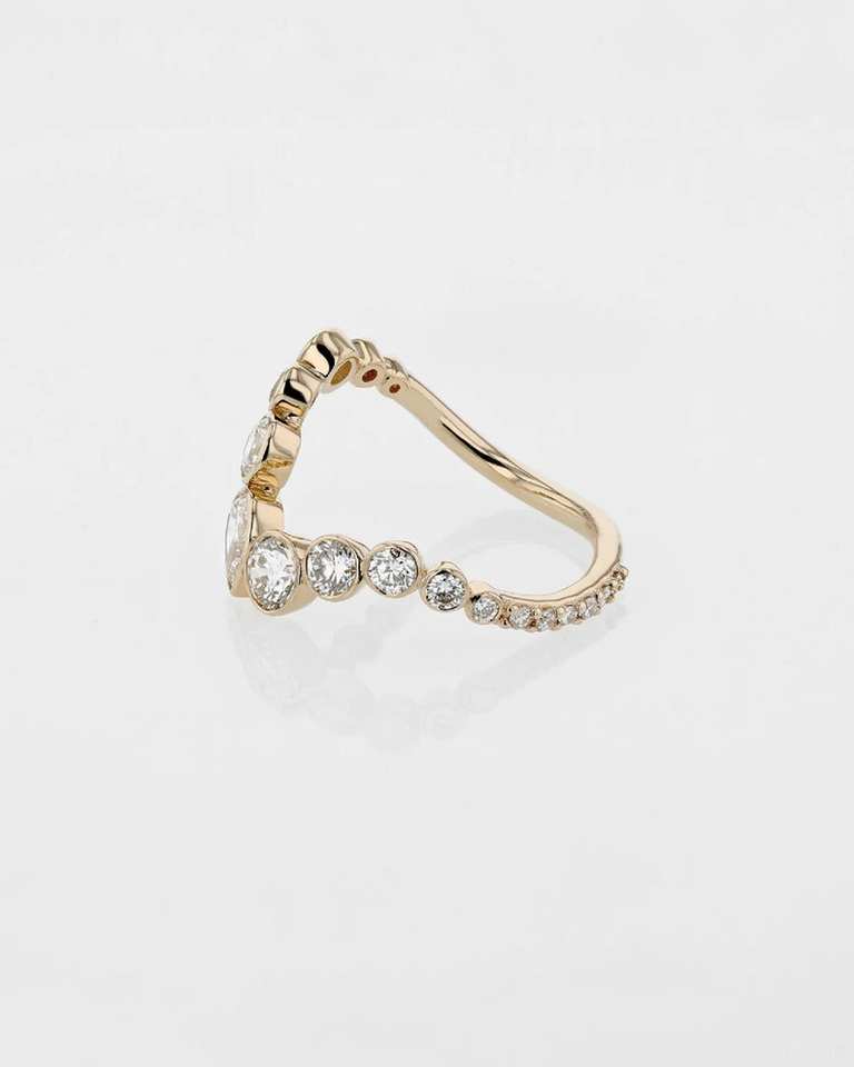 แหวนคลื่นเพชรรูปลูกแพร์และกลมสำหรับผู้หญิงแหวนทอง14K สำหรับงานแต่งงานงานปาร์ตี้และของขวัญ