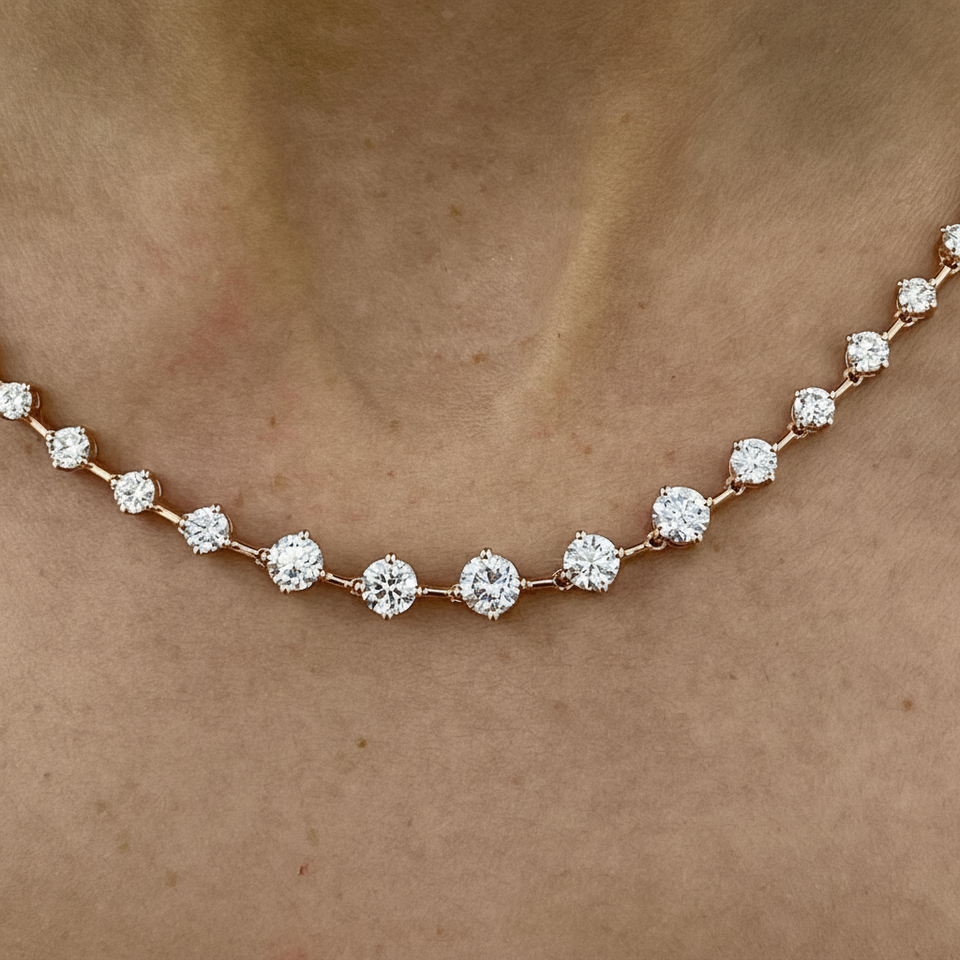 สร้อยคอเทนนิสเพชรทรงกลมแบบฝังขอบ
