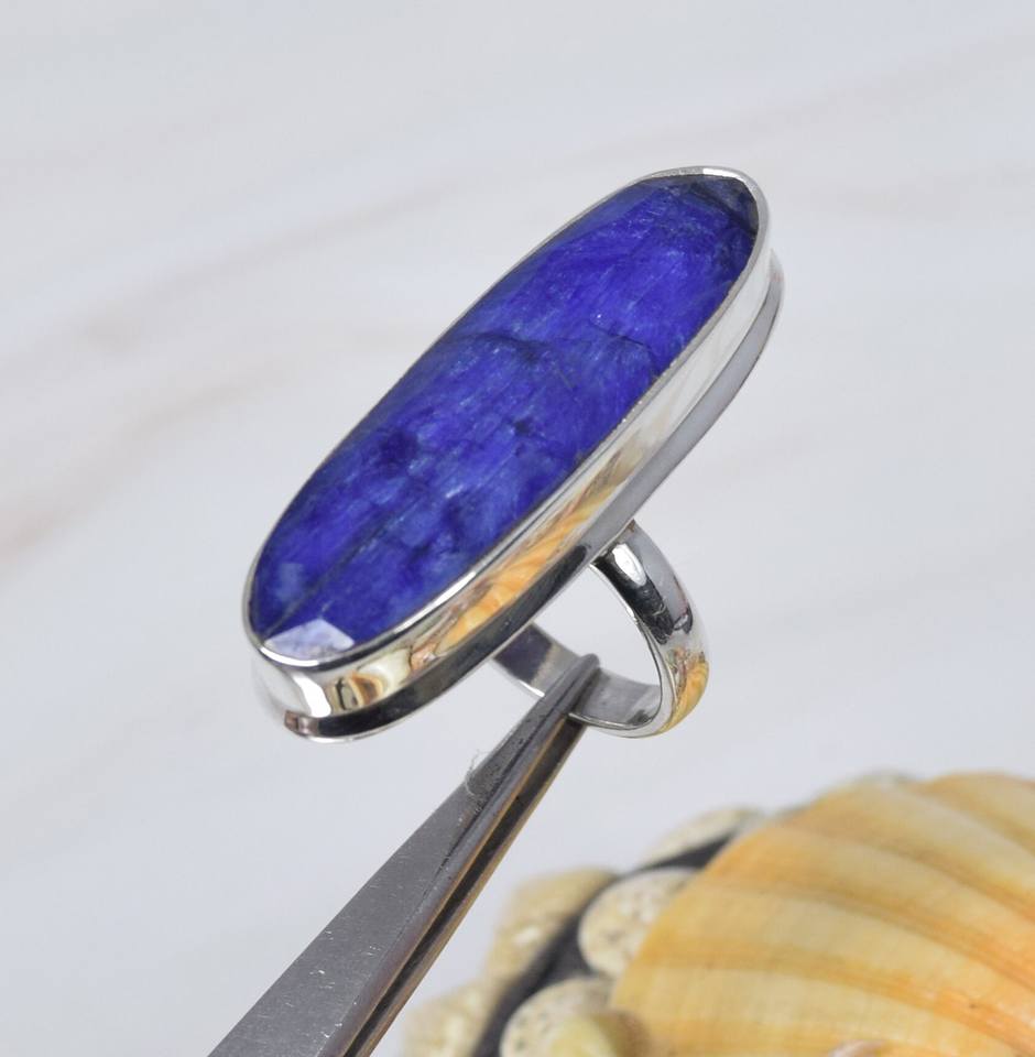 แหวนโบราณสีฟ้า925แซฟไฟร์เงินสเตอร์ลิงประดับรูปวงรีทำด้วยมือเครื่องประดับสุดพิเศษสำหรับผู้ชายและผู้หญิง