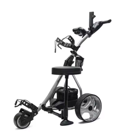 รถเข็นกอล์ฟไฟฟ้า Bf Golf X10 สีดำเมทัลลิก รับน้ำหนักได้ 20 กก. อุปกรณ์ช่วยประหยัดแรง ความเร็ว 24 กม./ชม. ผลิตในจีน