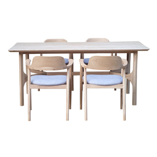 ชุดโต๊ะรับประทานอาหารทำจากไม้สักสีธรรมชาติ พร้อมเบาะนุ่มสำหรับใช้ภายในและภายนอกอาคาร