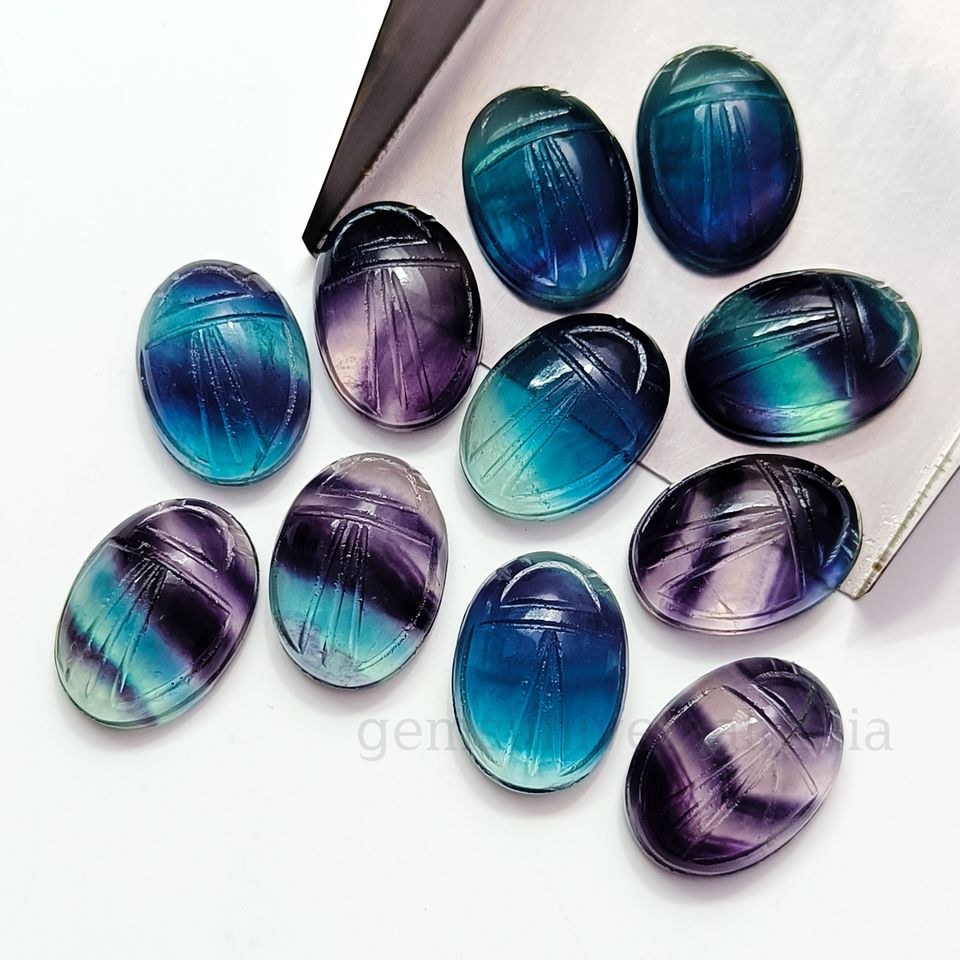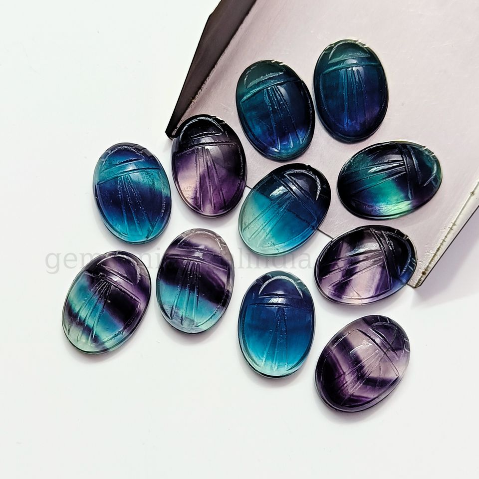 พลอยสีรูปแมลงปีกแข็งคล้ายฟลูออไรต์ธรรมชาติแกะสลักด้วยมือแกะสลักหินอัญมณีเครื่องประดับอียิปต์13x18m