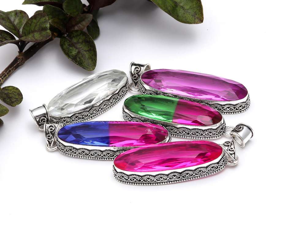 จี้ทัวร์มาลีนสองสีสไตล์วินเทจ ชุด 20 ชิ้น ขั้นต่ำสั่งซื้อ จี้ขนาดใหญ่ ชุบเงินแท้ 925 ทำด้วยมือ จี้คริสเตียน