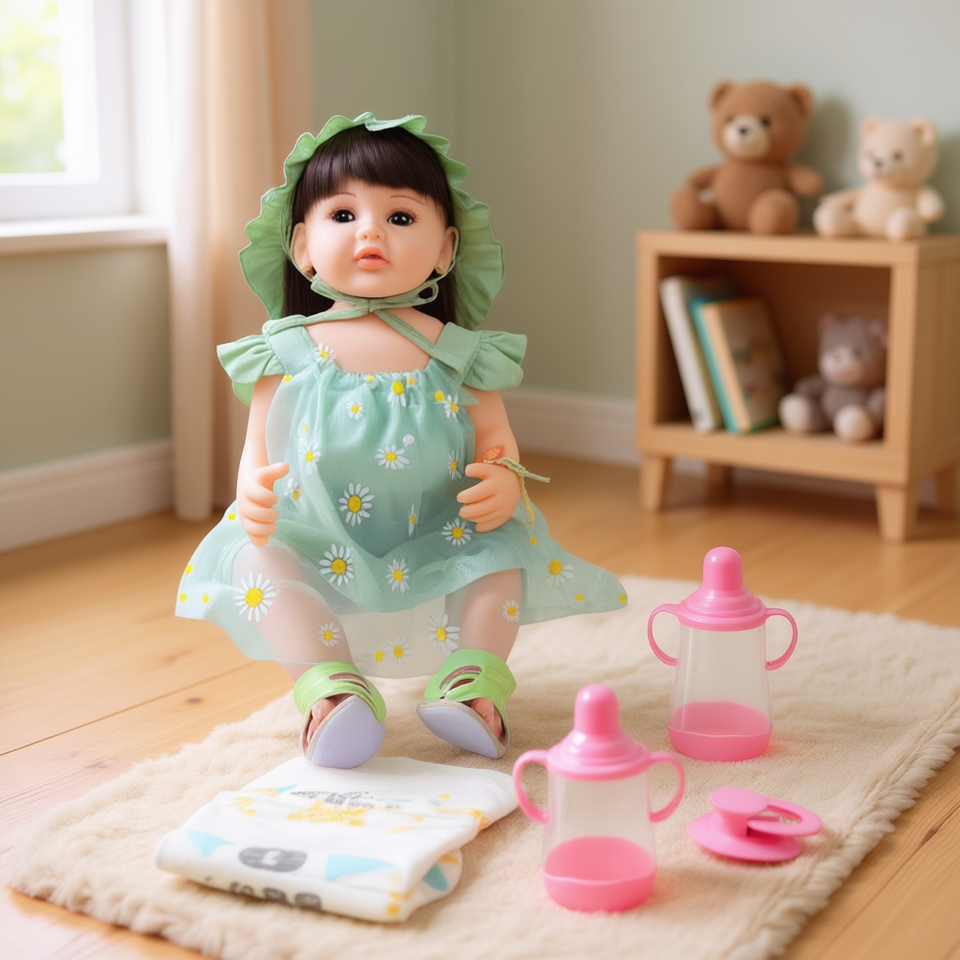 ตุ๊กตา Reborn BiBi ขนาด 55 ซม. พร้อมอุปกรณ์เสริมสำหรับเด็กผู้หญิง ชุดตุ๊กตาเด็กแบบโต้ตอบ วัสดุไวนิลเสมือนจริง