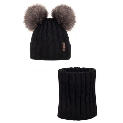ชุดหมวกและถุงมือผ้าพันคอสีดำ