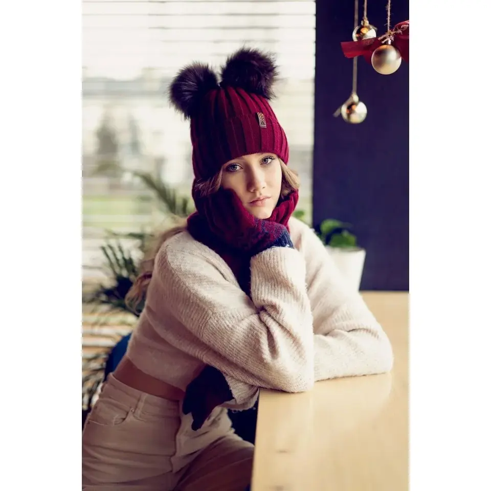 Beatrice ถุงมือหมวกผ้าพันคอครบชุดสำหรับฤดูหนาว