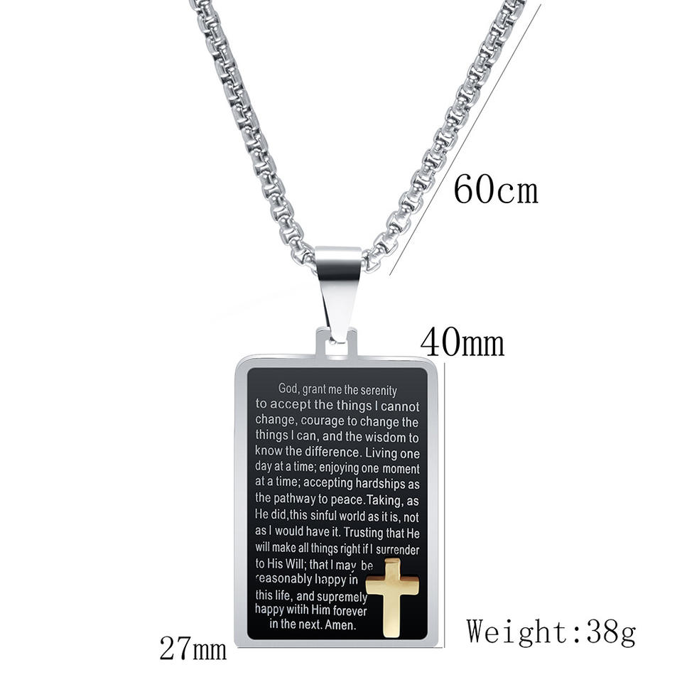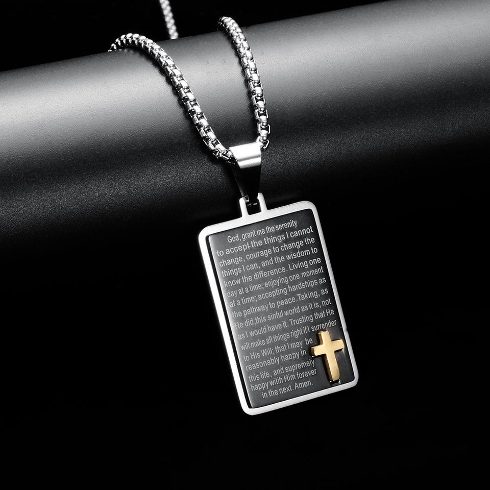 พระคัมภีร์ไขว้คำอธิษฐานสร้อยคอจี้สำหรับผู้ชายเครื่องประดับแฟชั่นทำจากสแตนเลสกันน้ำไม่ทำให้เสื่อมเสีย