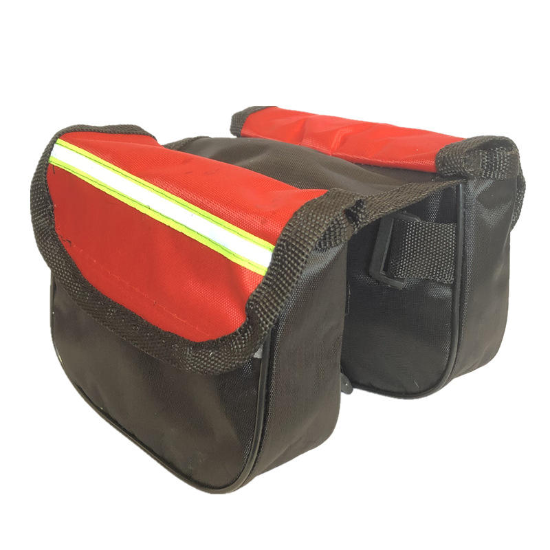 กระเป๋าติดเฟรมจักรยานแบบติดท่อด้านบน แบบพกพาได้สองด้าน ความจุ 2 ลิตร สีแดงและสีน้ำเงิน มีช่องใส่ของภายใน