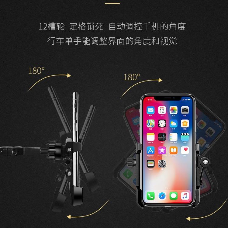 Bicycle Phone Holder Aluminum Alloy Black Mirror Base For Riding With Charging And Audio Support