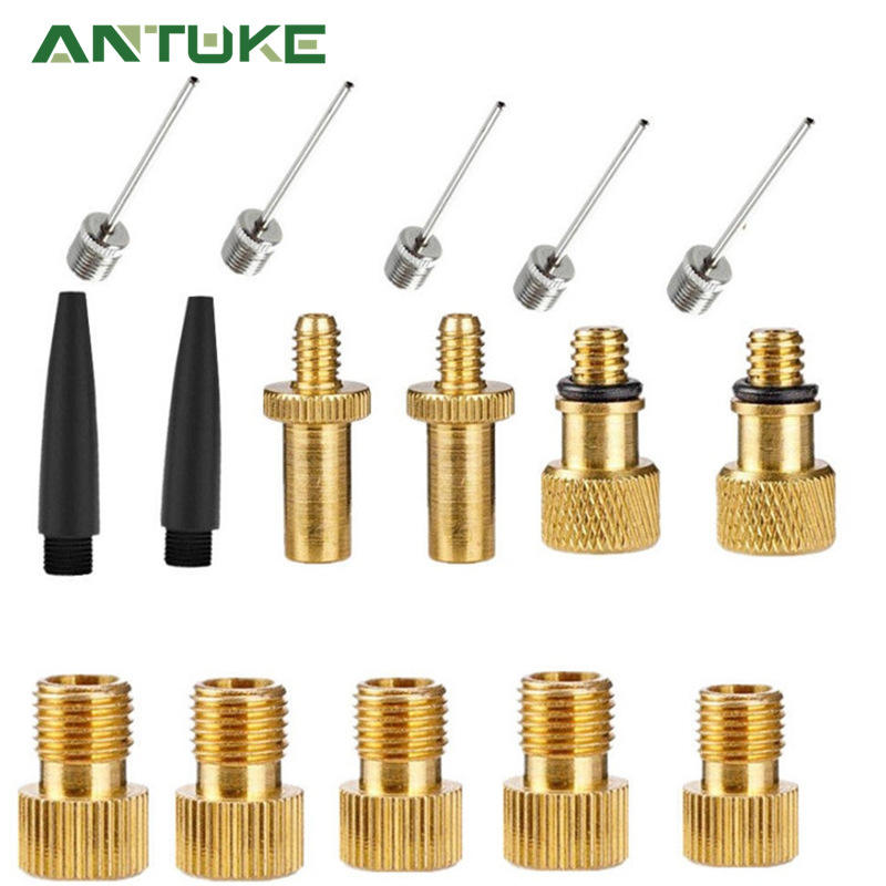 ชุดอะแดปเตอร์วาล์วจักรยาน 16 ชิ้น ชุดซ่อมยางในทองเหลืองสำหรับปั๊ม ประเภท SV AV DV