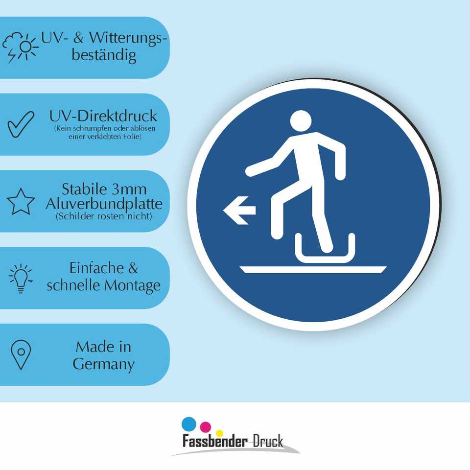 Bid Sign Reflective Traffic Sign M050 Round Arrow Exit the Sled to the Left According to DIN EN ISO 7010