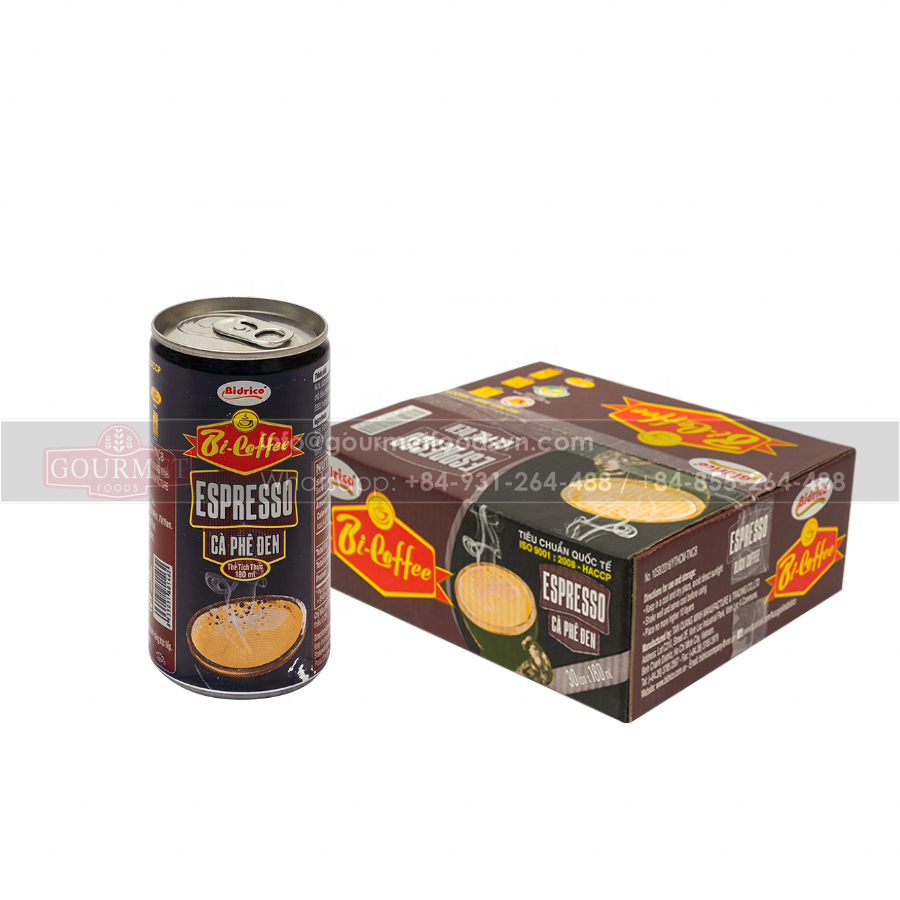 Bidrico เครื่องดื่มกาแฟดำ180มล. บรรจุกระป๋องจากเวียดนาม, บรรจุน้ำตาลเครื่องดื่มที่มีคาเฟอีน