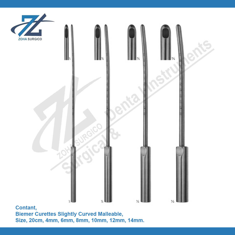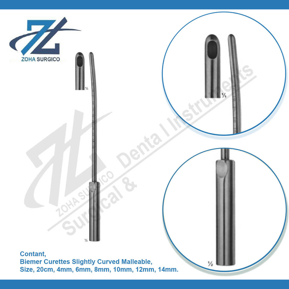 Biemer ที่ Curette สำหรับผ่าตัดแบบโค้งเล็กน้อย, ที่ขูดสแตนเลสแบบสุญญากาศอุปกรณ์สำหรับการดูดสูญญากาศพื้นฐานสำหรับการผ่าตัดขนาด140มม. 4มม.