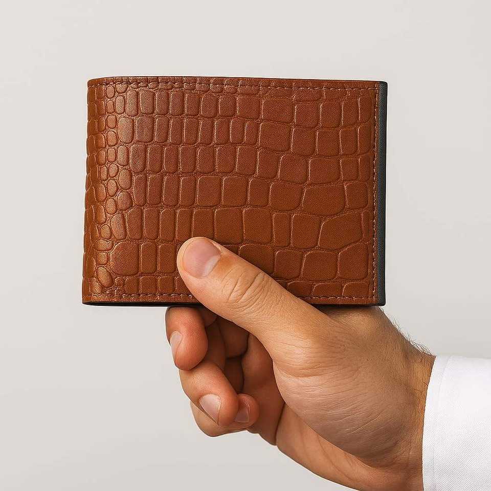 กระเป๋าสตางค์หนังผู้ชายแบบพับสองตอน ลายหนังจระเข้ พร้อมช่องใส่บัตร ป้องกัน RFID ช่องใส่เงินบางเฉียบ ใช้สำหรับเดินทาง