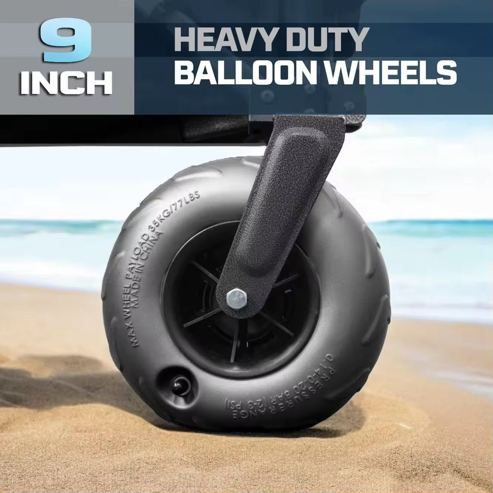 รถเข็นล้อลมขนาดใหญ่ชายหาดทรายลึกยางบอลลูนภูมิประเทศขนาดใหญ่รถเข็นอเนกประสงค์พับได้พร้อมช่องใส่ของ