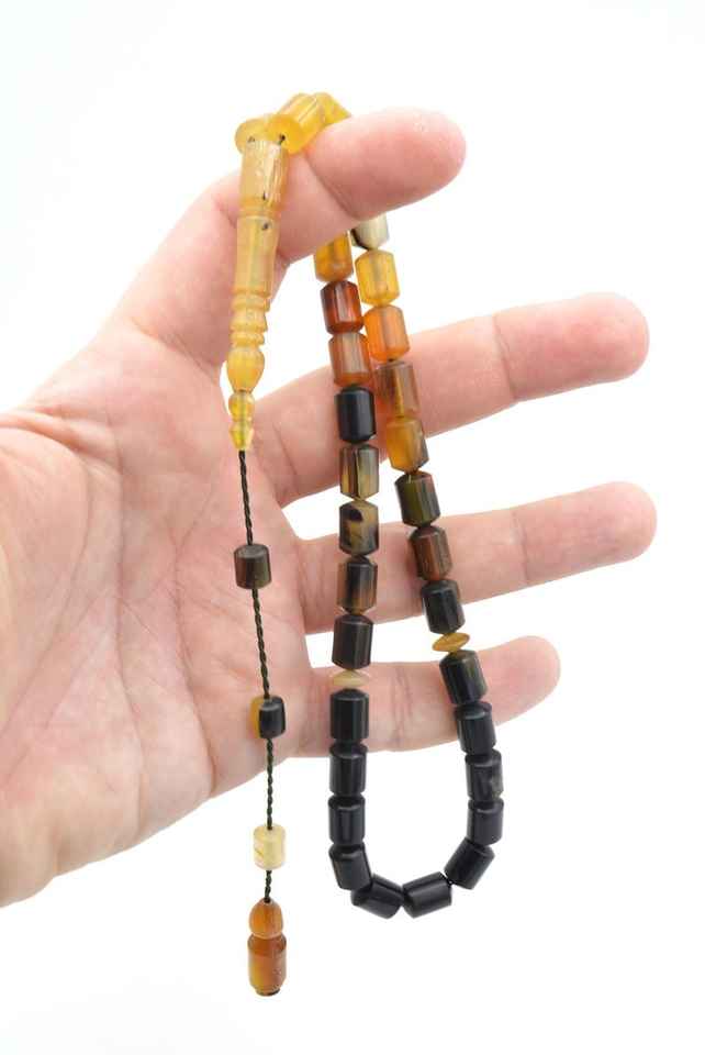 ลูกประคำเขาแกะสีดำขนาดใหญ่ 33 เม็ด ลูกประคำอิสลาม มิสบาฮ์ เทสบีห์ ทำด้วยมือ คุณภาพสูง เหมาะสำหรับการทำสมาธิ ราคาประหยัด