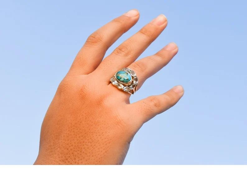 ทองแดงสีเขียวขุ่น + บุษราคัมสีน้ำเงินหินหลัก