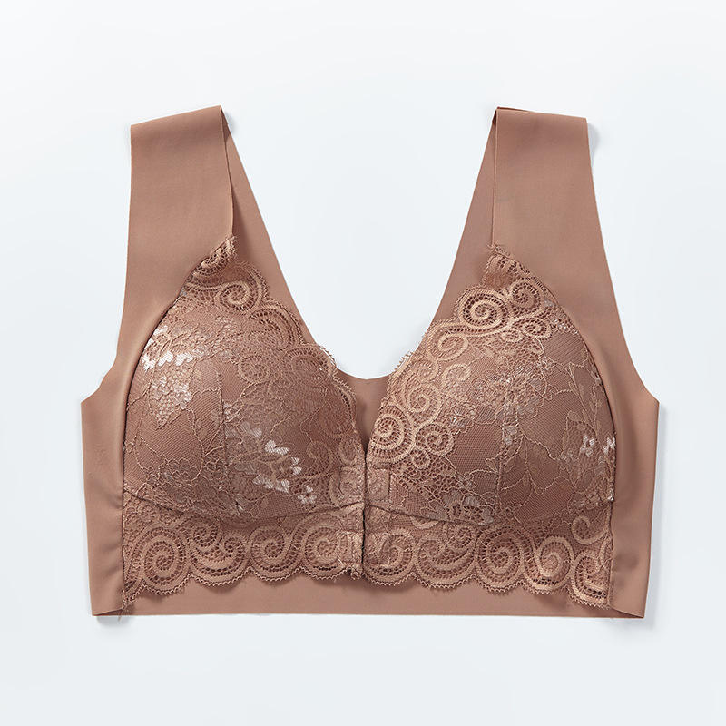 บราดันทรงไร้โครง ไซส์ใหญ่พิเศษ XXXL แบบไม่มีสายรัด พร้อมตะขอหน้า ตกแต่งด้วยลูกไม้ ช่วยยกกระชับหน้าอก